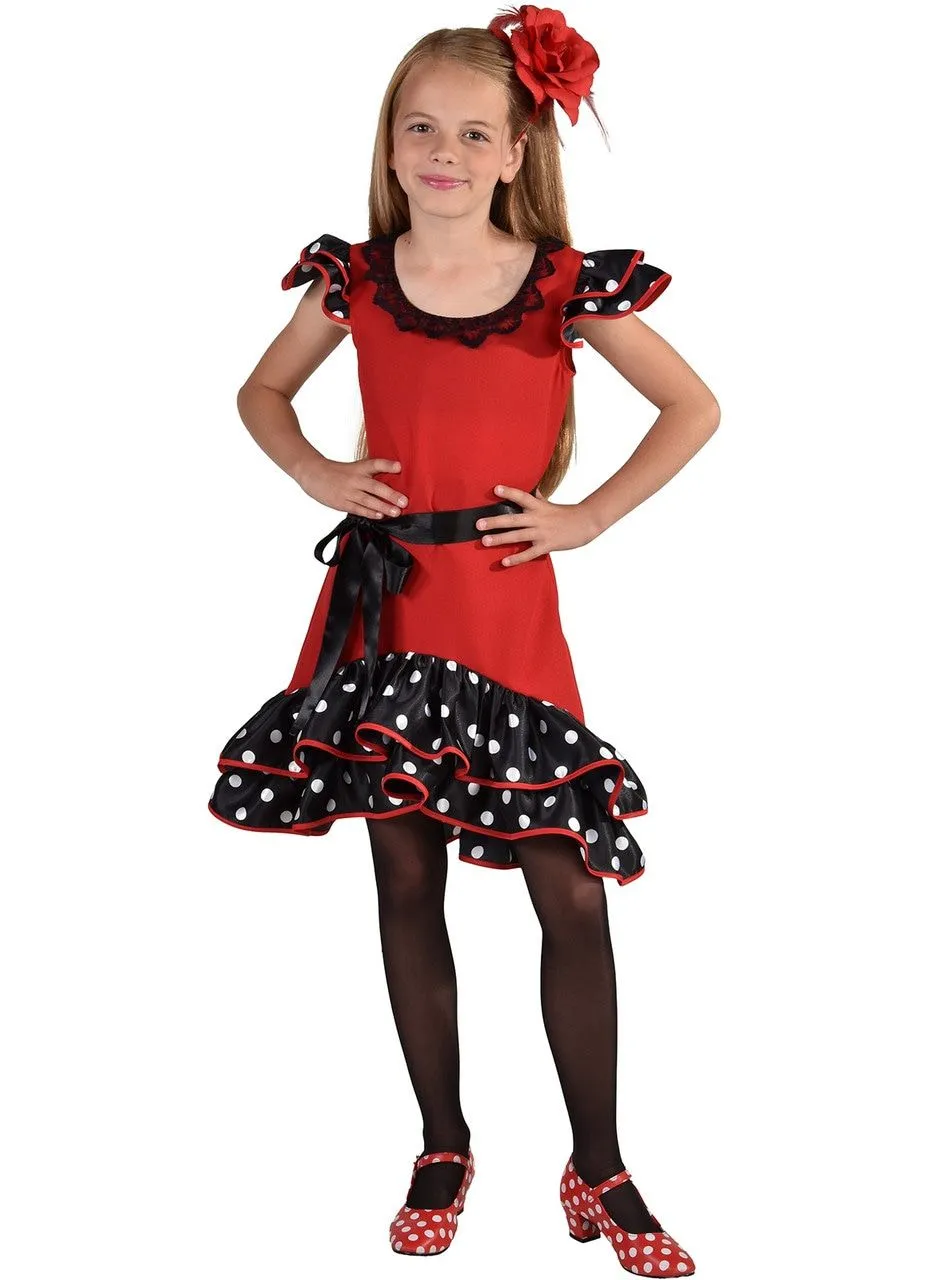 Spaanse Sevilla Flamenco Danseres Meisje Kostuum